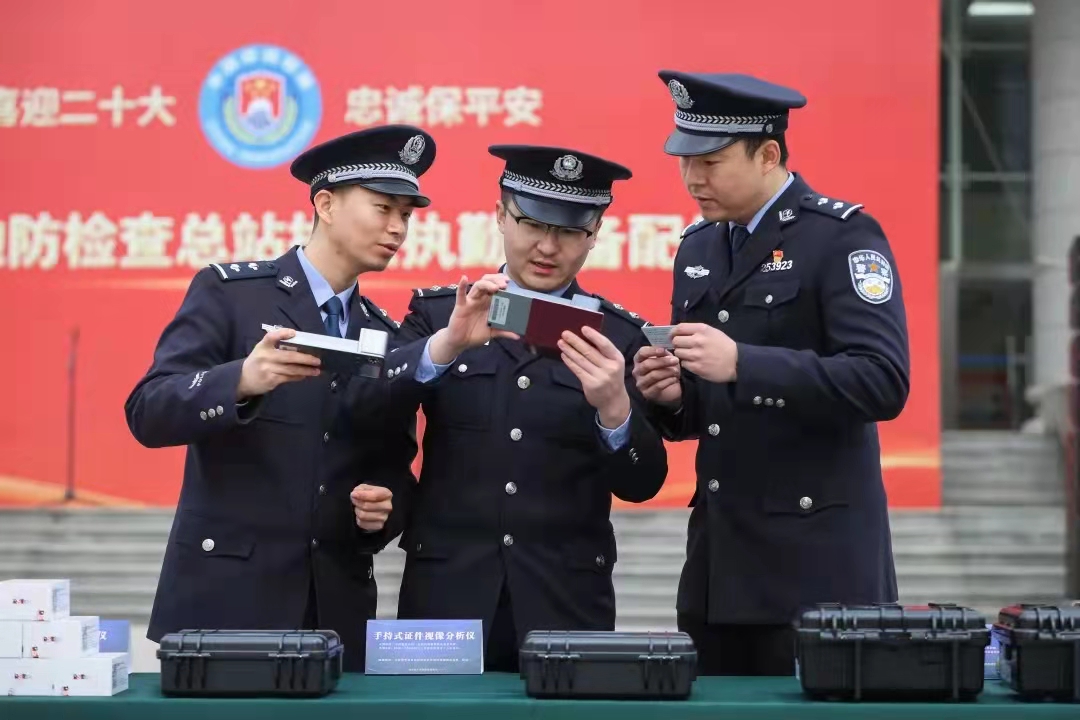 山东出入境边防检查总站便携式文件仪、全双工对讲系统举行下发仪式。